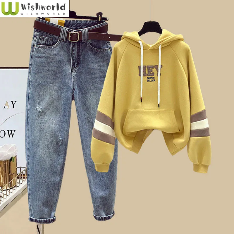 Women's Suit Spring and Autumn Thin 2022 New Korean Embroidery Fashion Top with Vintage Jeans Casual Two-piece Suit