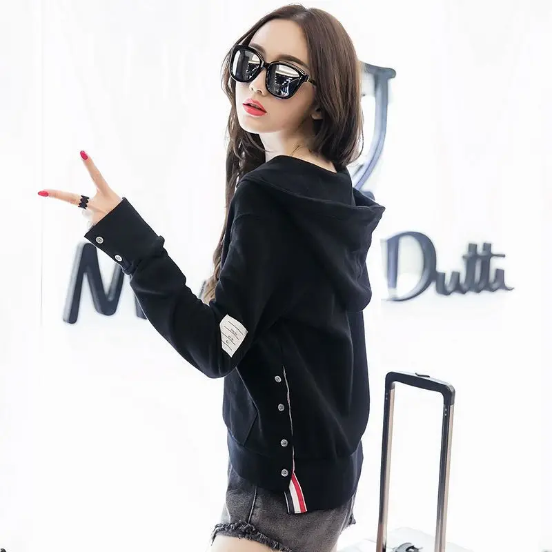 Loose Women's Hooded Sweatshirts Black Baggy Female Top Spring and Autumn Button Hoodies Essential Outerwears Y2k Vintage Basic  Read more