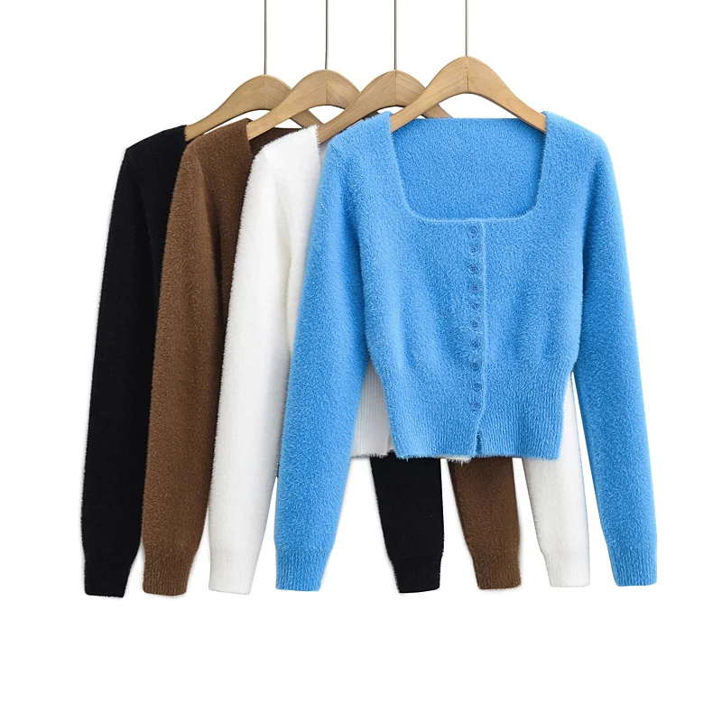 Fall outfits cardigan women white cropped sweater knited fuzzy cute sweater black kawaii button up cardigan square neck top blue  Read more