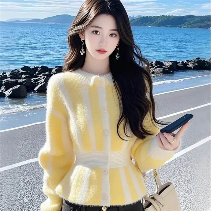 Women Fall Elegant Knit Cardigan Yellow Petal Sleeve Sweater 2025 Autumn Fashion Versatile Sweet Vibrant Sweater Cardigan  Read more