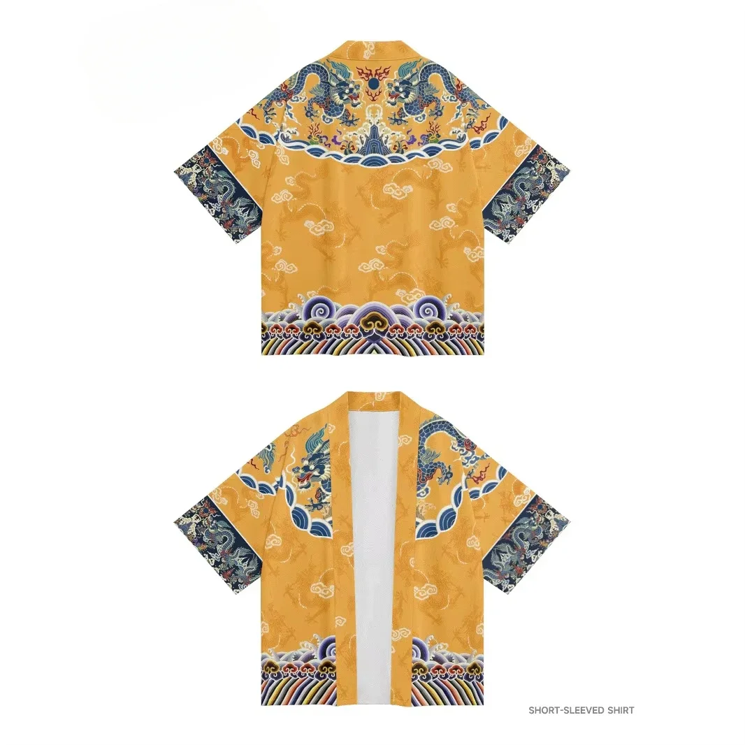 Casual Women Beach Japanese Kimono Streetwear Men Tops Plus Size Chinese Traditional Dragon Print Cardigan Yellow Haori