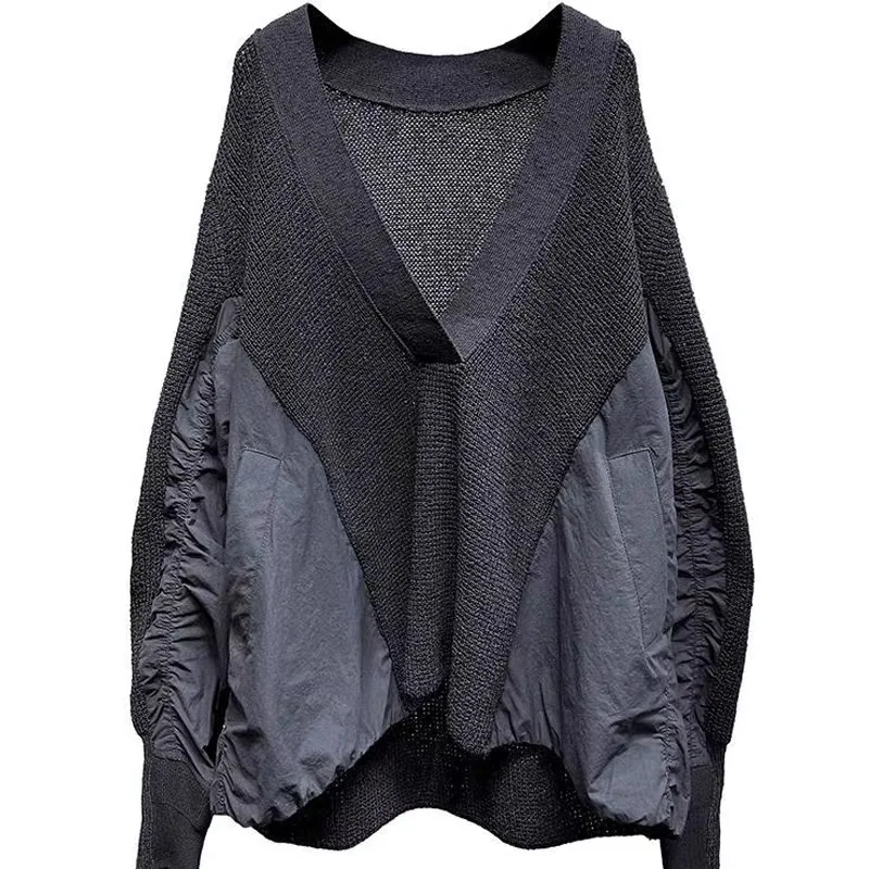 This year's popular French fashion slimming patchwork pocket V-neck knitted sweater for women in autumn and winter