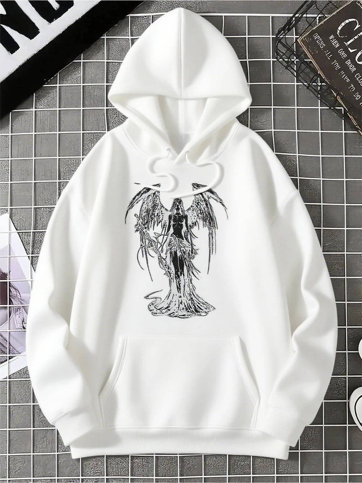 Gothic Angel Emo Graphic Print Autumn and Winter Cotton Hoodie for Men and Women Outdoor Street Sports Training Brand Trendy