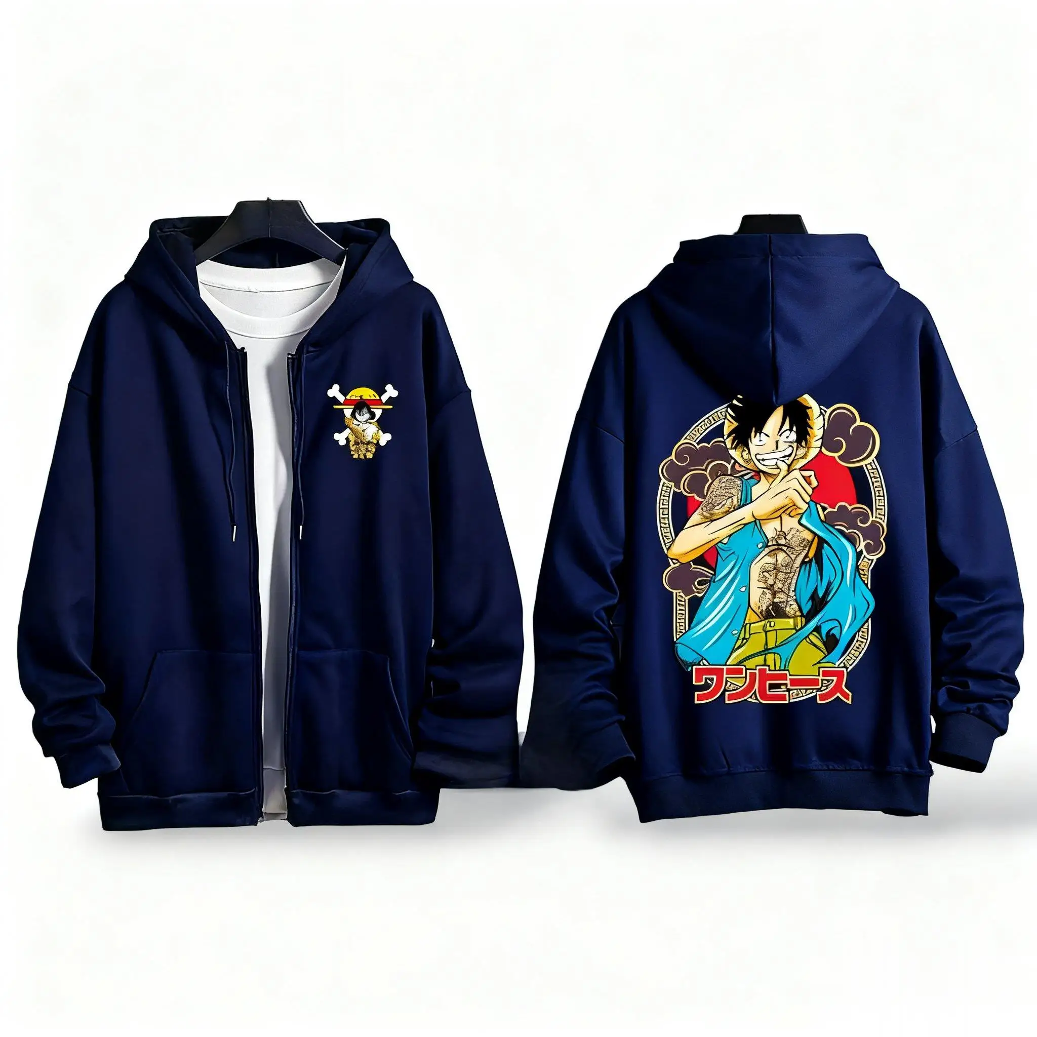 One Piece Luffy Anime Hoodie Men Women Zip Up Sweatshirt Japanese Cartoon Graphic Print Casual Streetwear Autumn Winter Cosplay