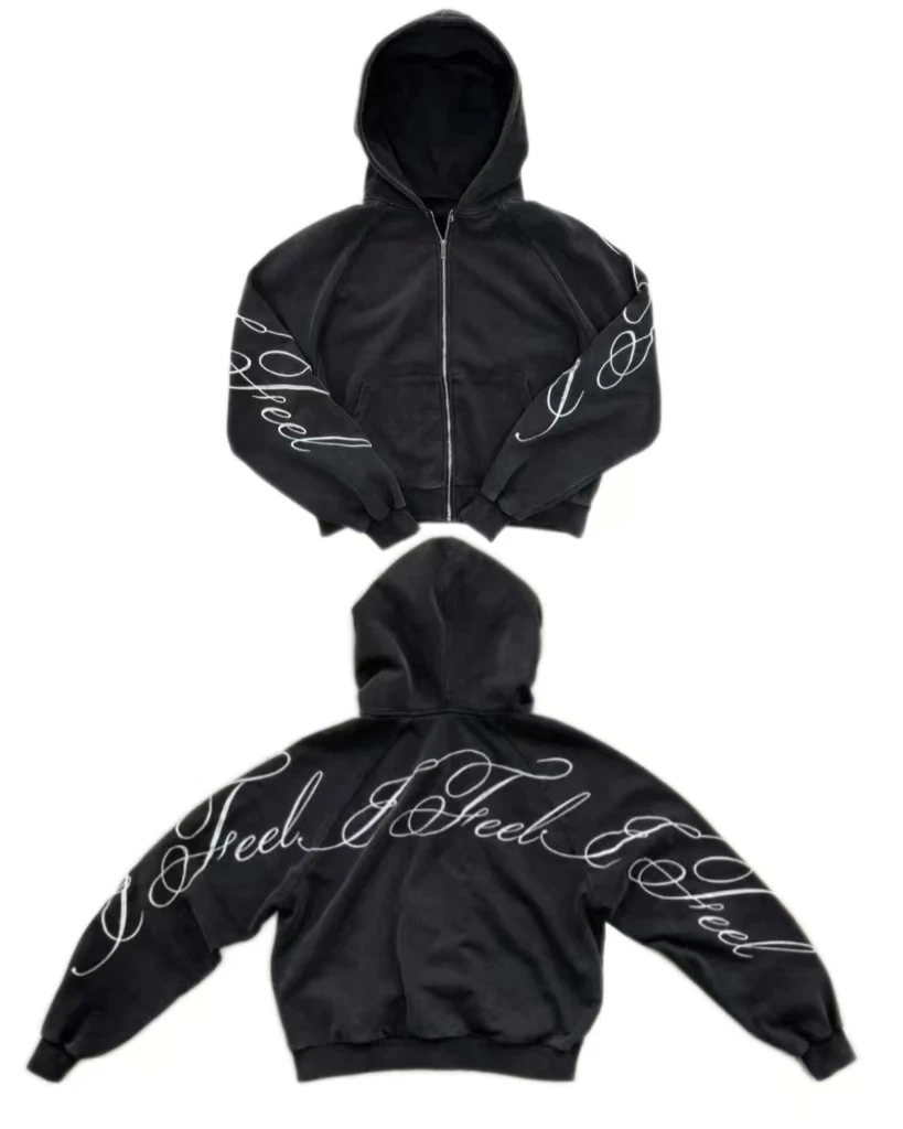 Y2K harajuku Gothic Letter Print Retro Fashion Men And Women Hoodie Hip-Hop Punk Style Black Oversized Zipper Sweatshirts