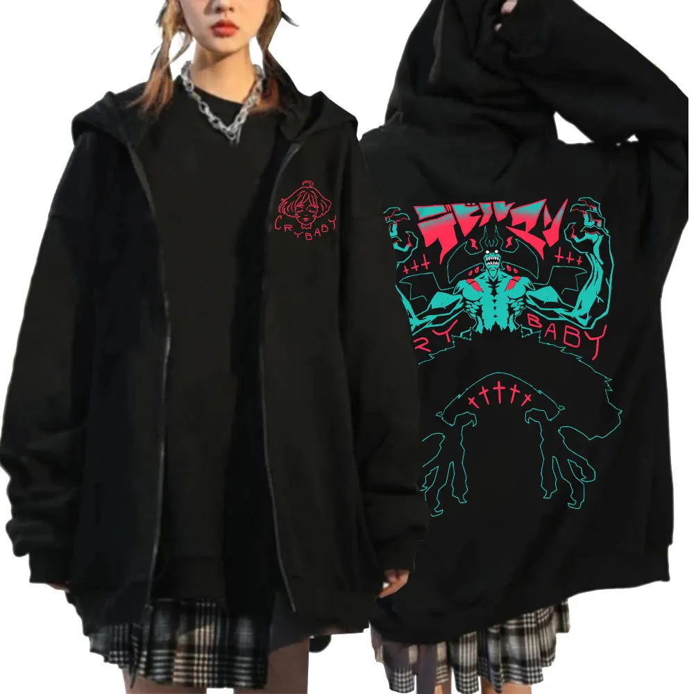 Anime Devilman Crybaby Fudou Akira Graphic Printed Hooded Men Women Zipper Hoodies Plus Size Sweatshirt Harajuku Zip Up Jacket
