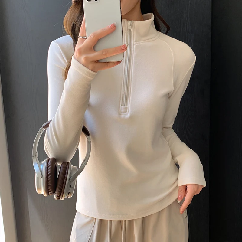 Autumn Winter Zipper Up Pullovers Women Fashion Long Sleeve Turtleneck Sweatshirt Woman All Match Bottom Warm Pullovers Female