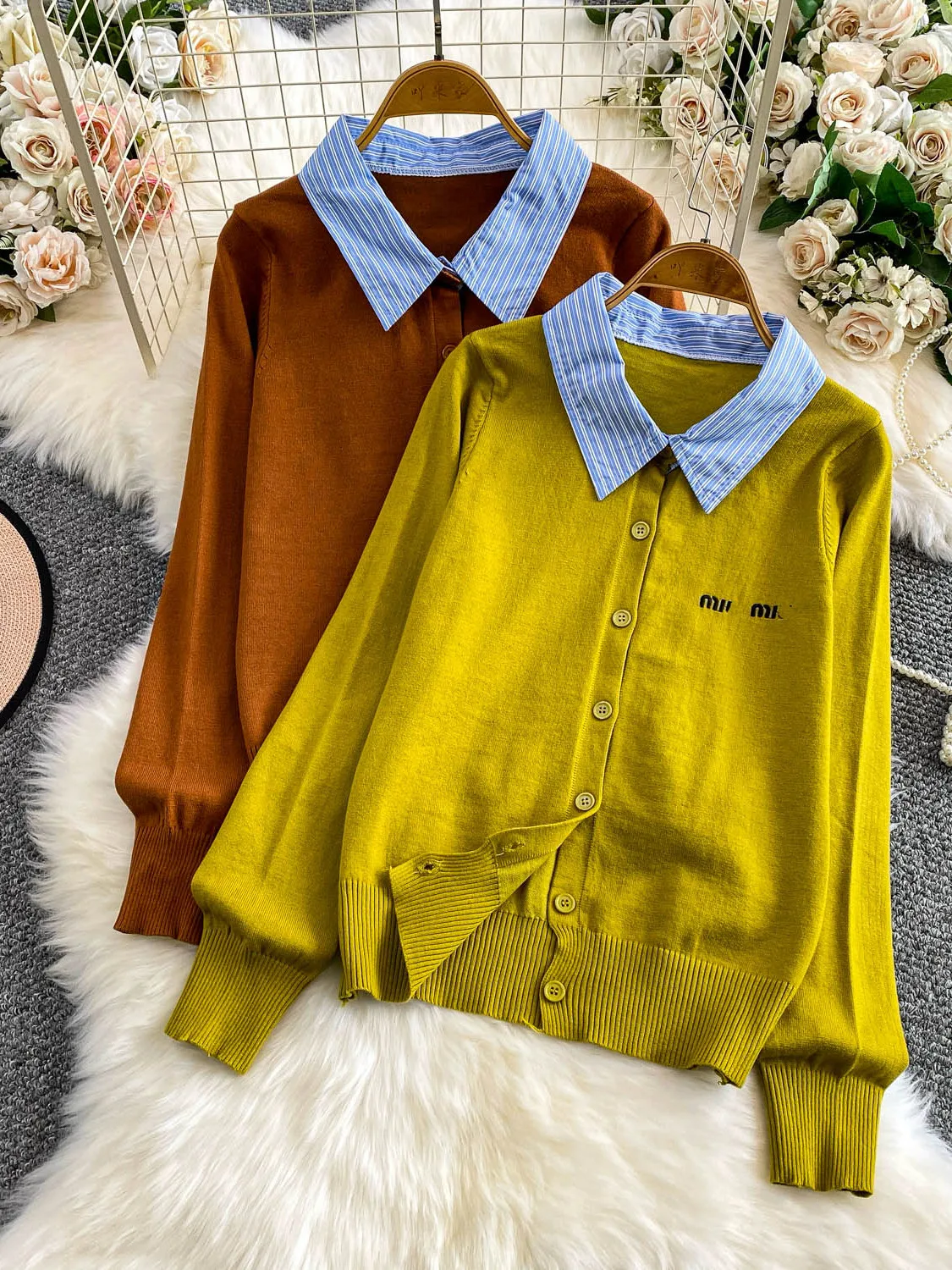 2025 New Sle Casual Loose Knitted Cardigan Women's Loose Fit Striped Collarl Jaet Embroidered Top Age-Defng Splice