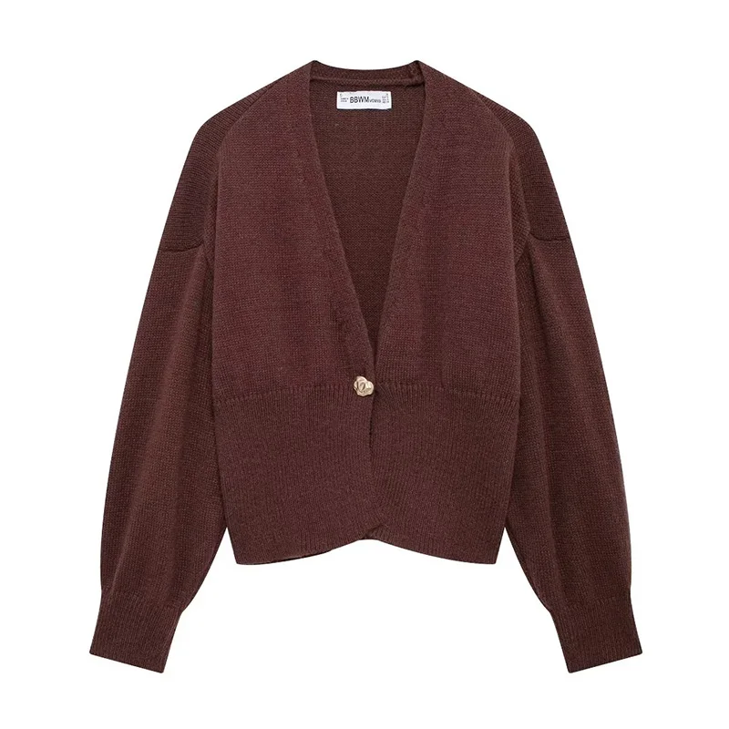 Willshela Women Fashion Brown Single Button Knitted Sweater Vintage V-Neck Long Sleeves Female Chic Lady Tops Outfits  Read more