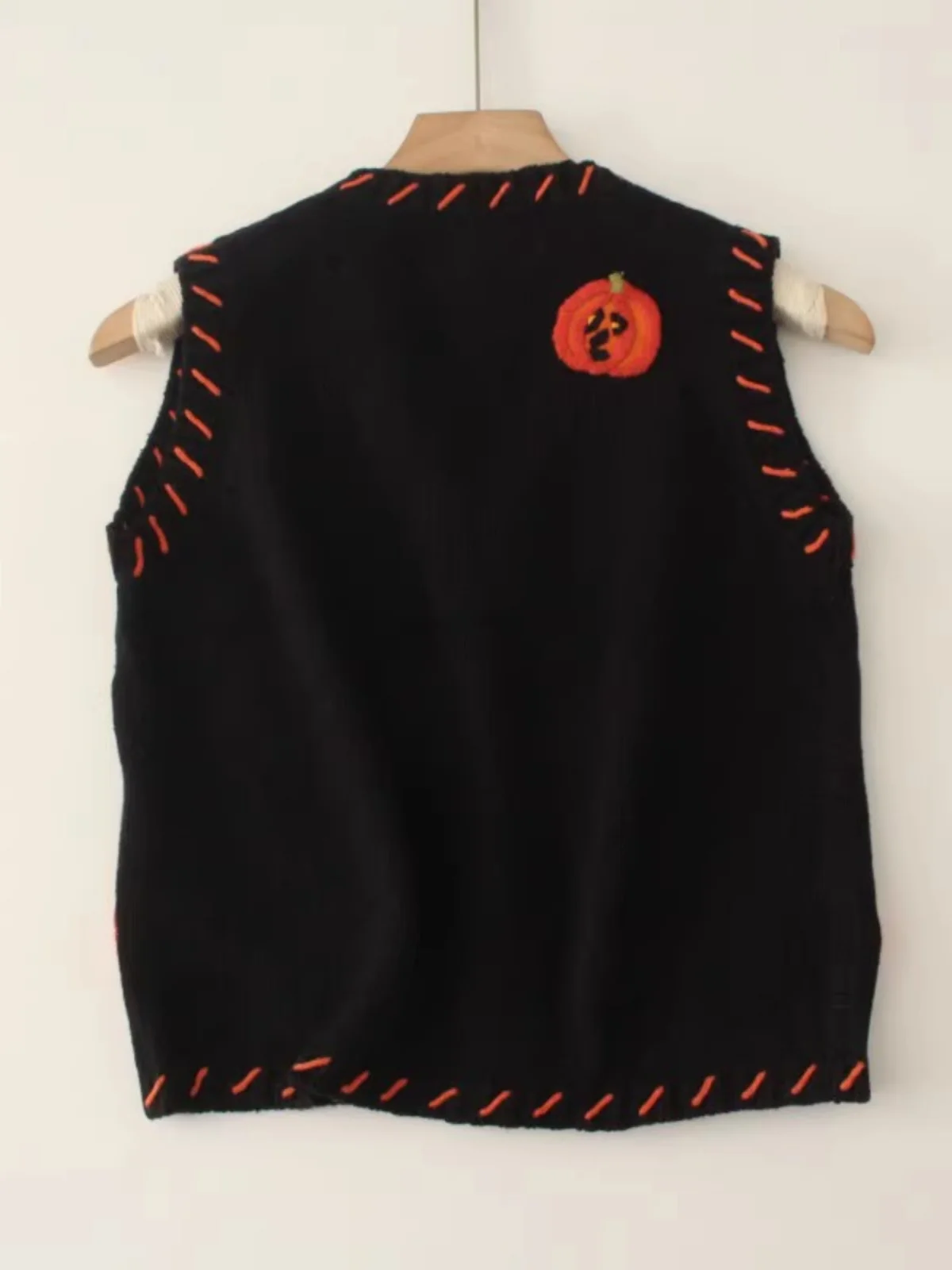 Retro American loween Sle Knitted Vest Patchwork 3D Cotton 45% Linen 55% Spandex Svel Women's Cardigan  Read more