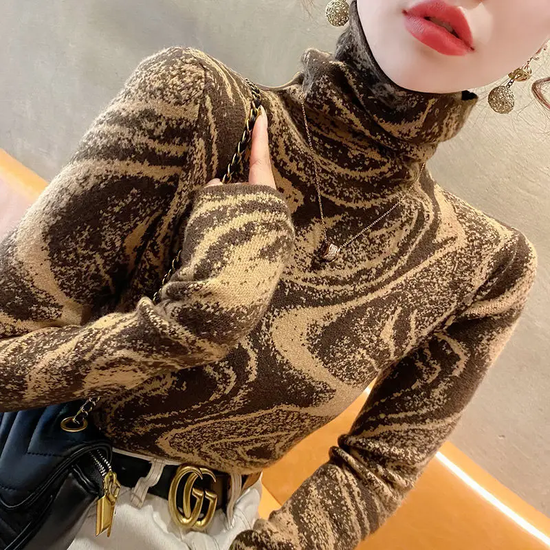 Women Clothing Elegant Fashion Slim Turtleneck Sweaters Autumn Winter Vintage All-match Geometric Knit Pullovers Long Sleeve Top
