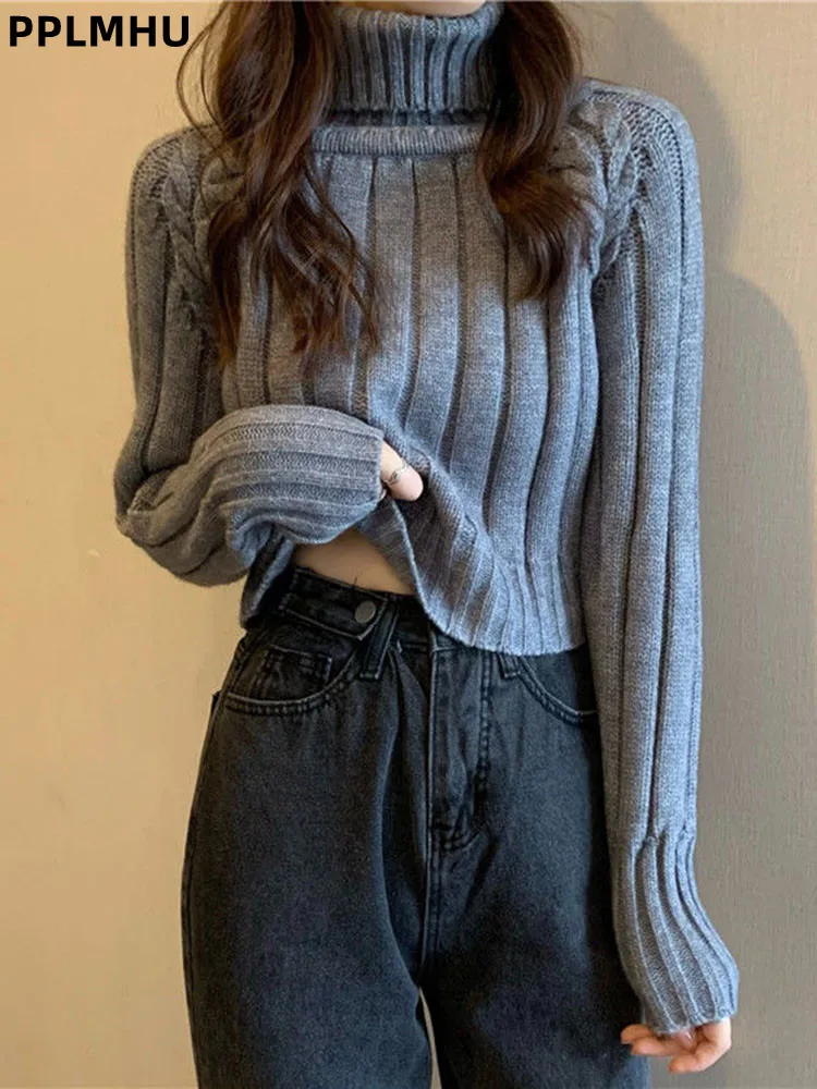 Turtleneck Fashion Warm Knitted Sweater Thickened Women's Casual Baggy Jumpers Short Loose Korean Soft Knitwear Pullovers Top  Read more