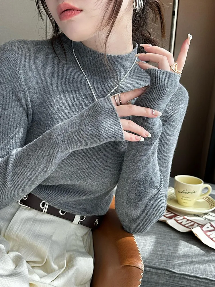 Y2K Women Knitting Pullover Sweater Long Sleeve Bottom Shirt Slim Half Turtleneck Sweaters Autumn Winter Soft Blouse Jumper Tops