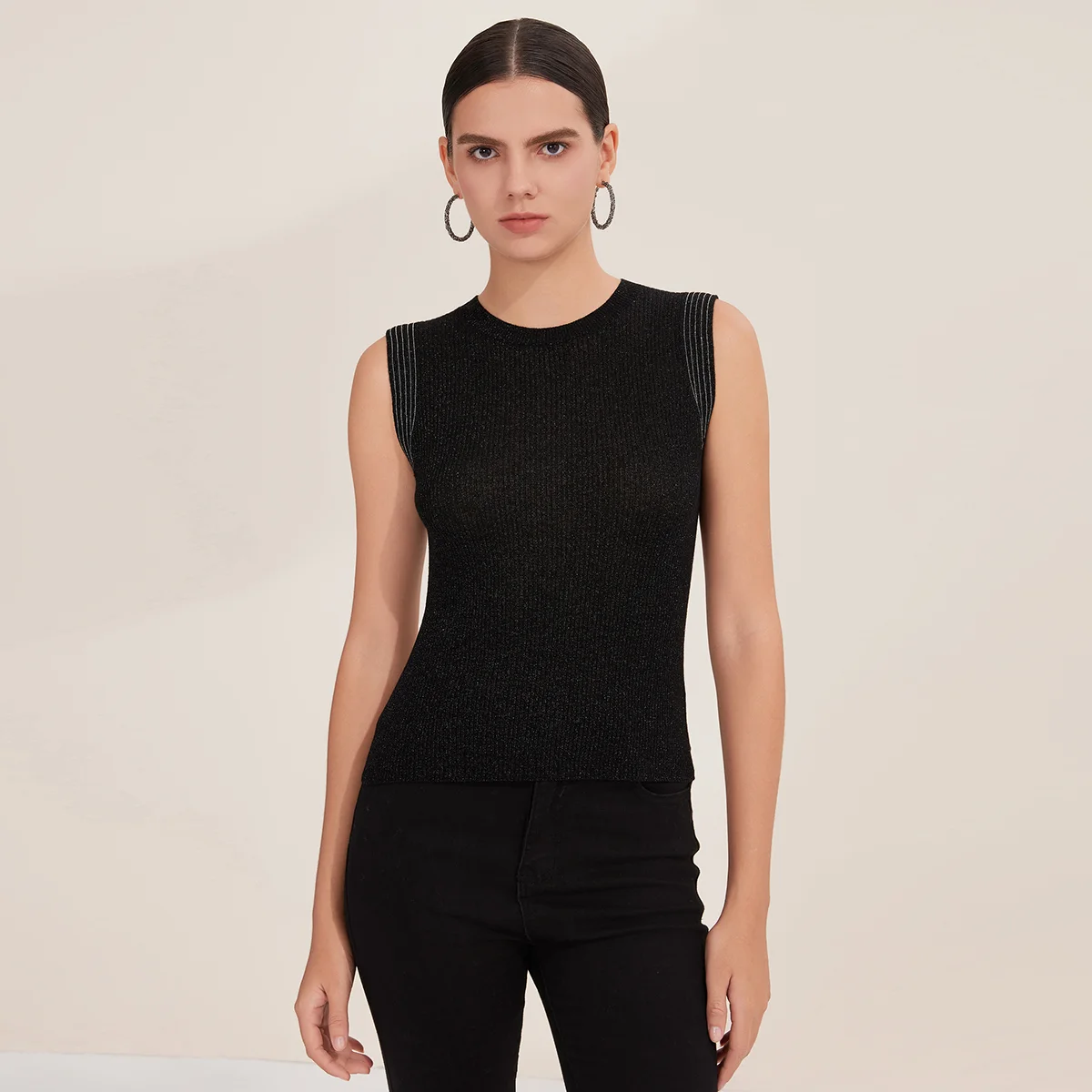 BY3521240 Women's Superfine Merino Wool Sleeveless Ribbed Knit Vest Crew Neck Lightweight Sweater for Fall