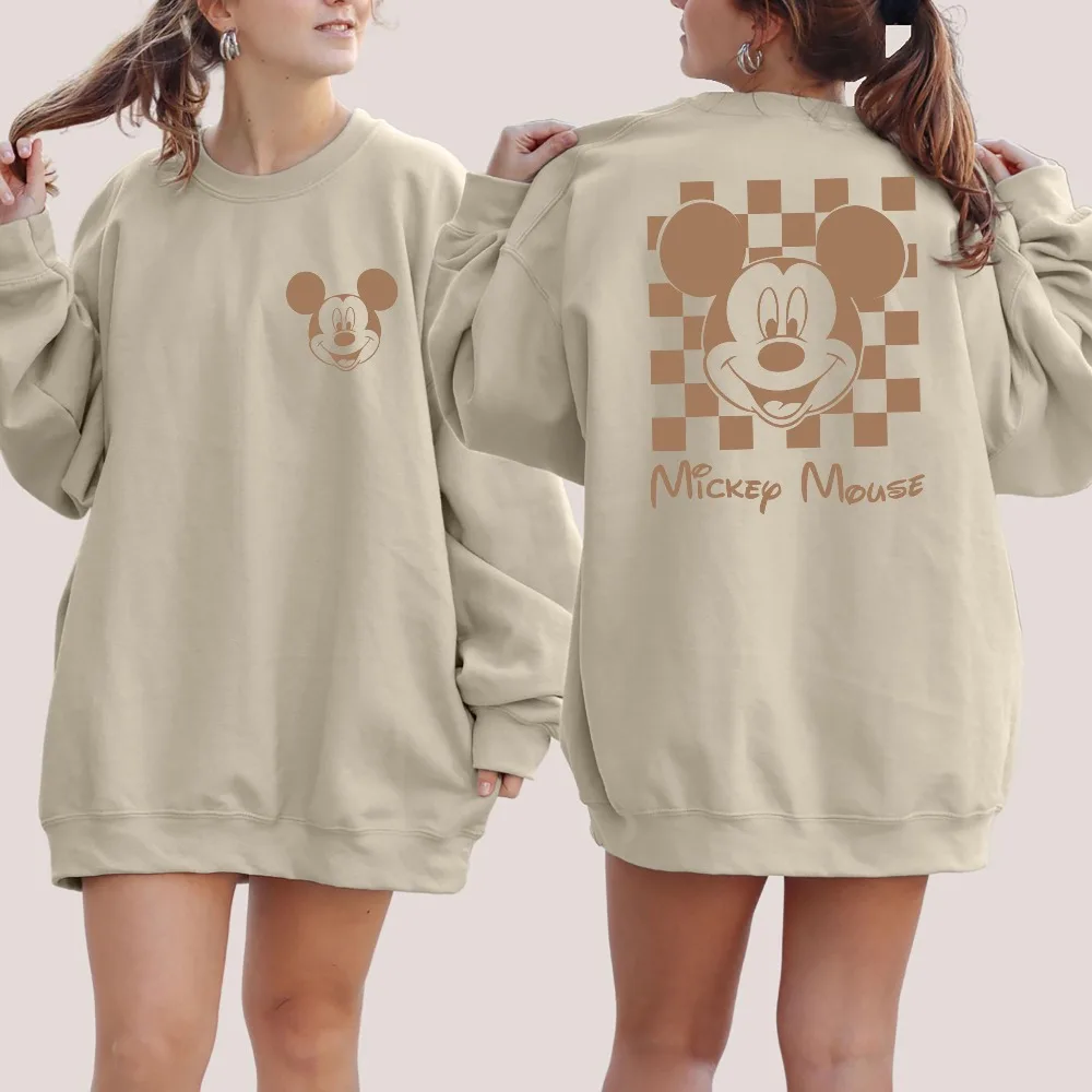 Vintage Minnie Mouse sweatshirt with Disney plaid pattern Unisex crew-neck sweatshirt for fall and winter hoodies women