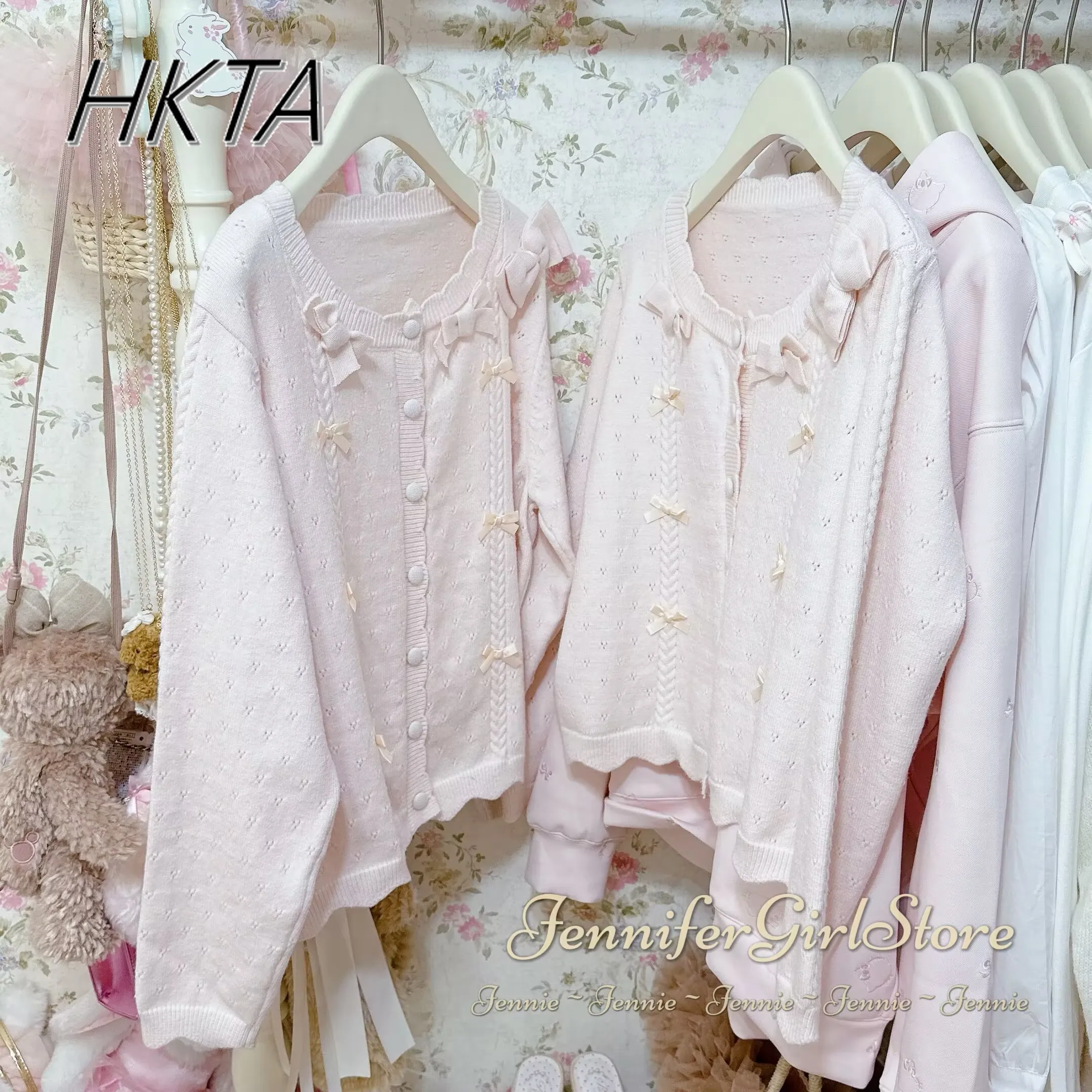 Sweet Heavy Industry Cashmere Knitted Sweater Women Autumn New Lolita Gentle Crew Neck Long Sleeve Bow Loose Cardigan Sweater