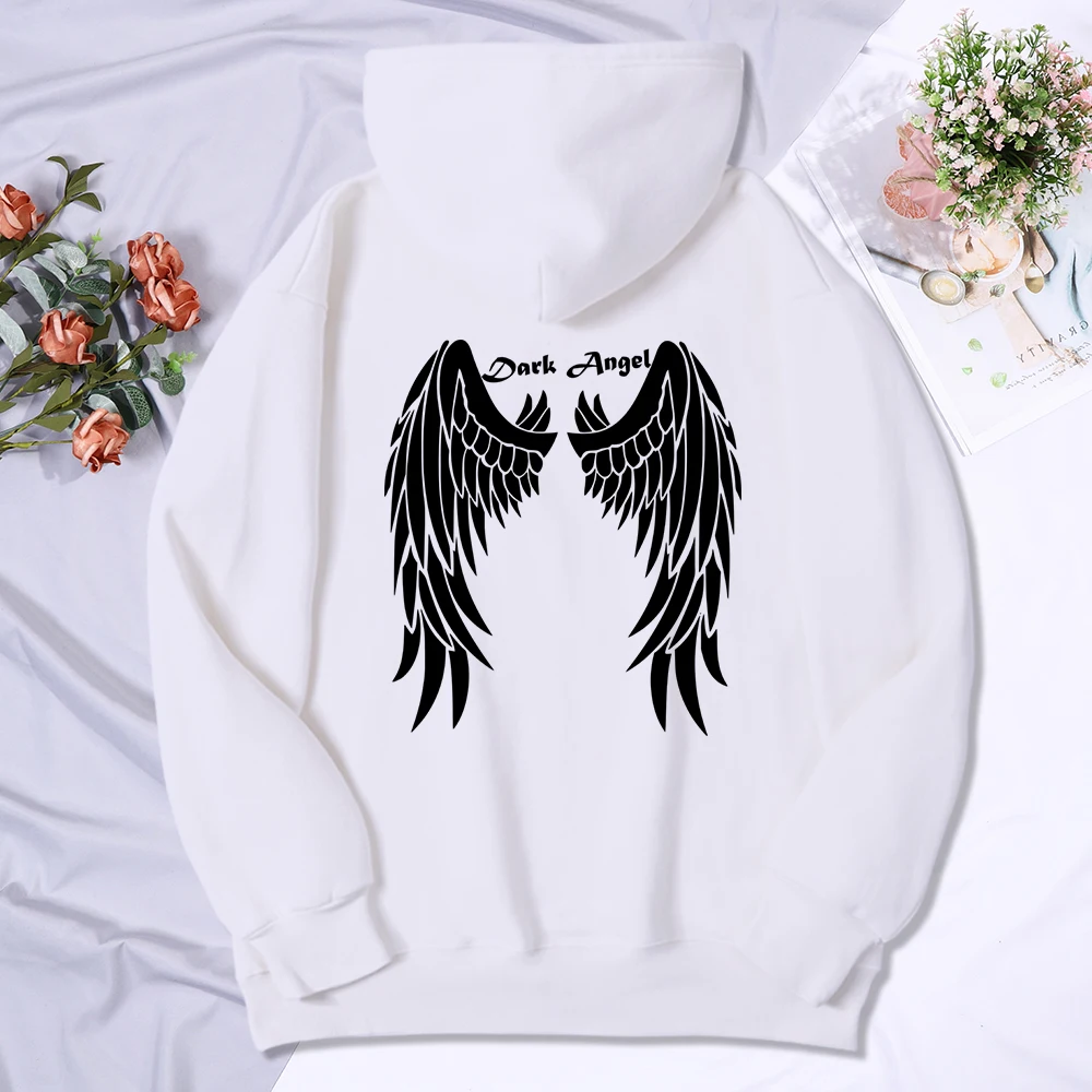 Dark Angel Giant Wings Print Women Hoodie Fashion Casual Hoody Loose Fleece Soft Sweatshirt Breathable Soft Sportswear Female