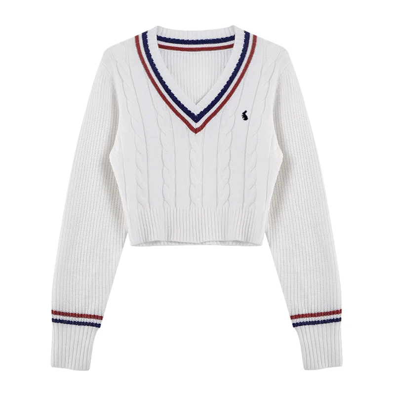 YuooMuoo Korean Fashion Sweaters Women Autumn V-neck Y2K Cartoon Embroidery Knitted Tops Winter Soft Basic Long Sleeve Pullovers