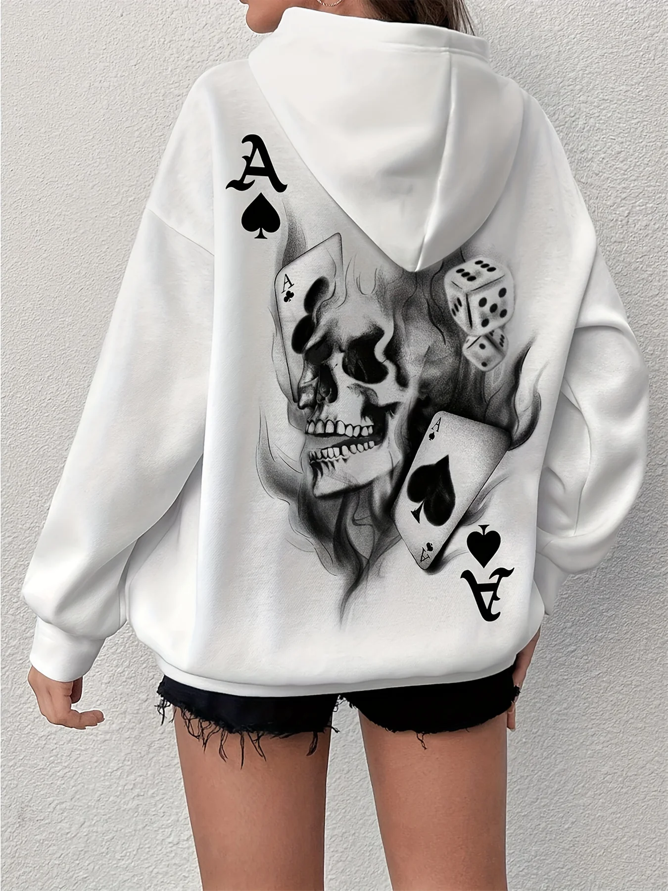 Women's autumn and winter fashionable casual loose geometric skull pattern with plush warm long sleeved hooded sweatshirt