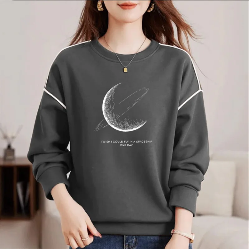 Spring Autumn Geometric Printing O-Neck Pullover Women's Clothing Lantern Long Sleeve Casual Elegant Hoodies Office Lady Tops