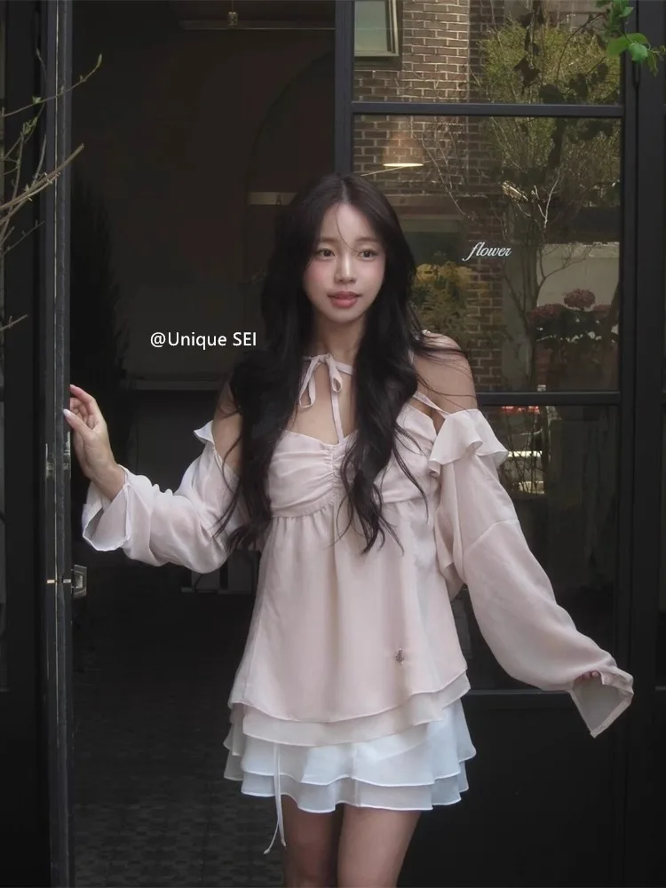 Slimming Effect Korean Sle Pure Desire Girl's Versatile Lace Trim ter Top oulder awl Open Cardigan Set Commute Wind