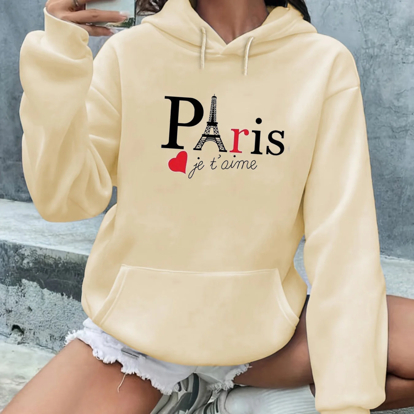 Women's casual hoodie sweatshirt Paris letter graphic print round neck long sleeved autumn and winter warm regular version