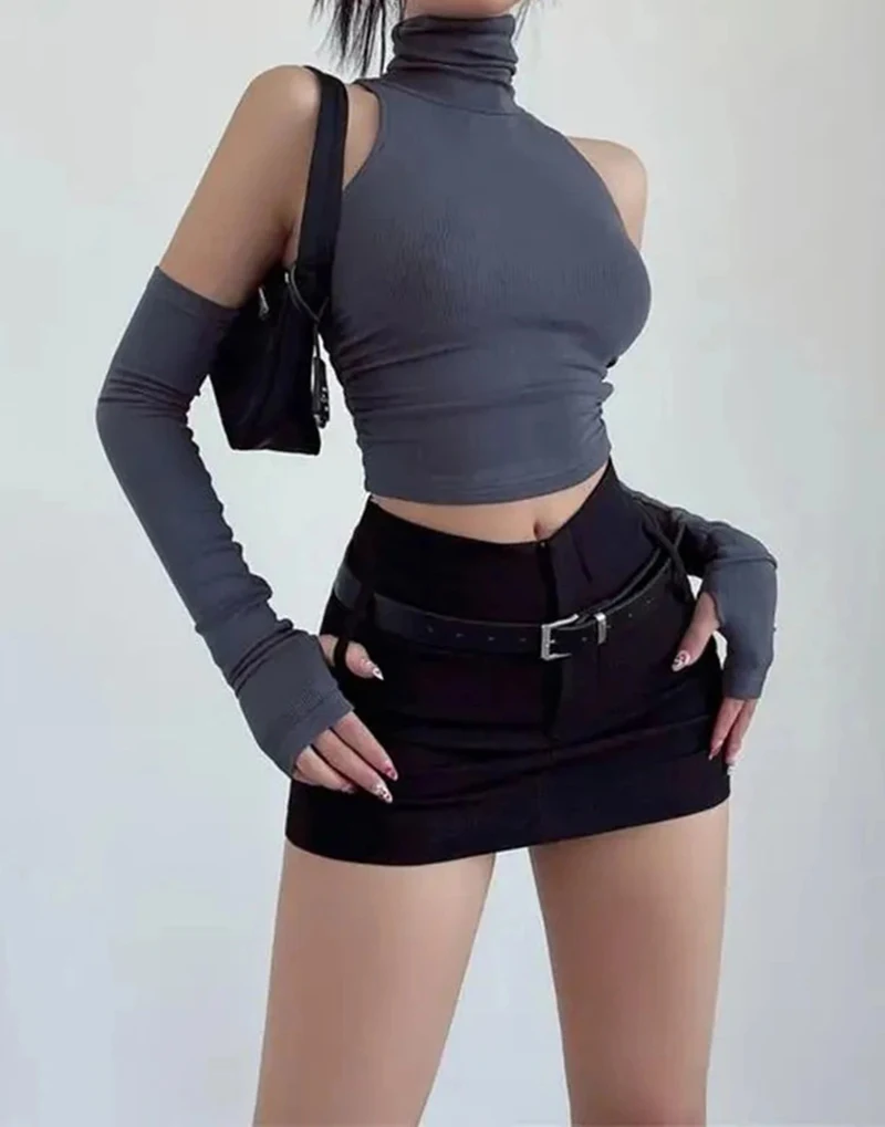 Mesh Knitted Top Women Y2K Tank Top Half Neck Vest Female Sleeveless Sweater Chic Cut Out Streetwear Solid Skinny Tube Top