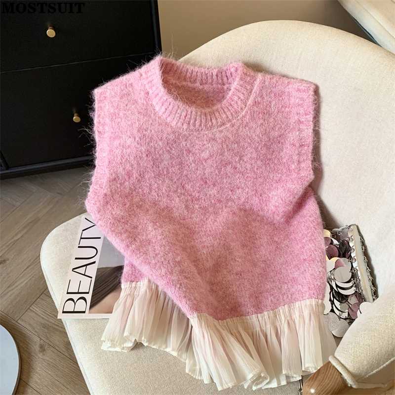 Women Sweater Vest Pullover Elegant Fashion Loose Ladies Tops Sleeveless O-neck Stylish Chic Female Jumpers Knitwear 2025