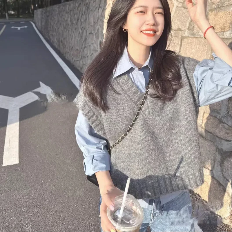New Fashion Casual Loose Knitted Sweater Vest Women Autumn Winter Sleeveless Pullovers Women's Sweater Vintage Knit Lady Tops