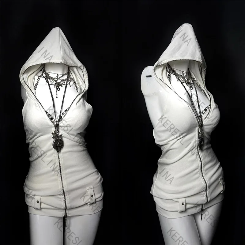 American Style Retro Short Sleeved Vest Top E-Girl Y2k Cut Hoodies Women Summer Vintage Slim Fit Sleeveless Sweatshirts 2000s