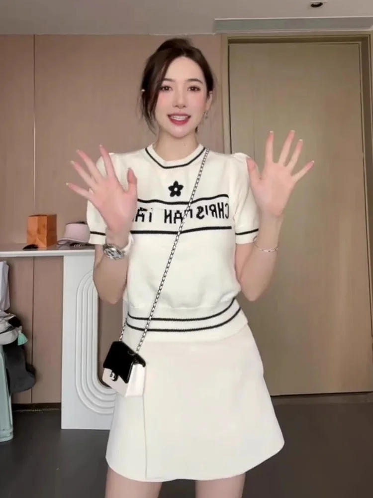 Slim Fit ort Sve Ice Silk Knitted Top Women's Summer New Sle Thin Sweater Faionable Knitted Upper Apparel