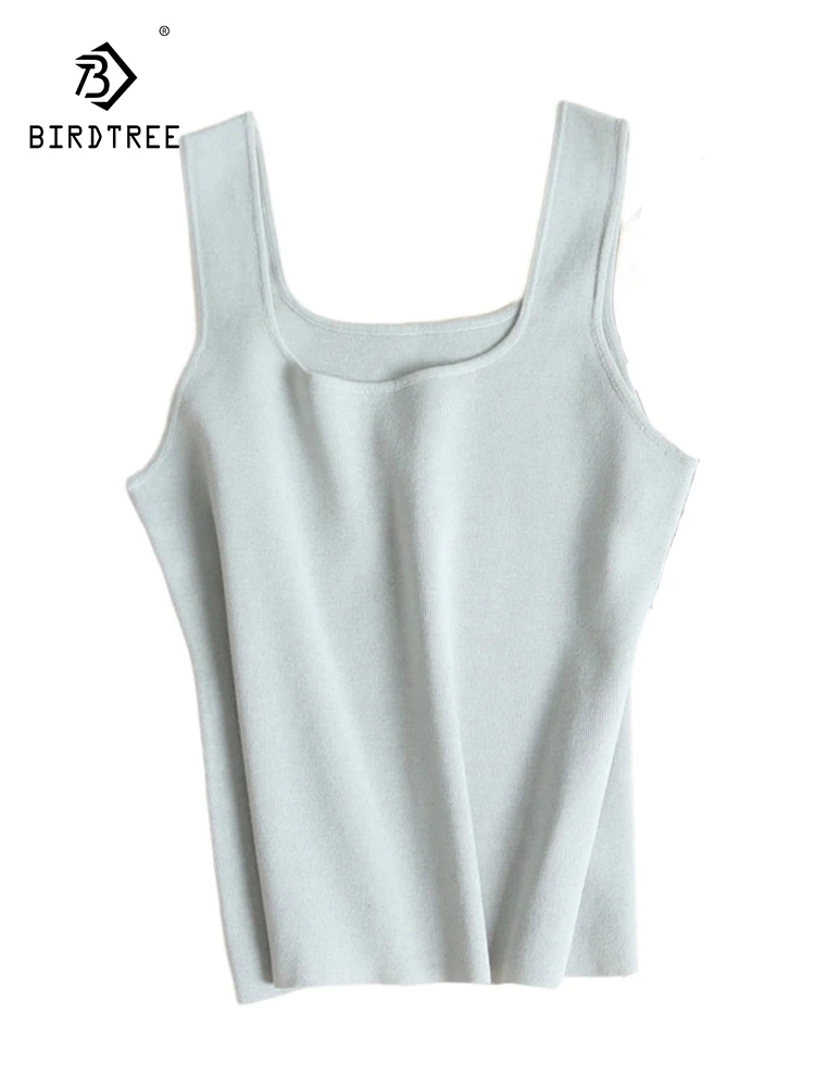 Birdtree 10.5% Silk Sexy Crop Womens Tank Top Solid Breathable Skin-Friendly Versatile knitted Vests External Wear P3N371QC