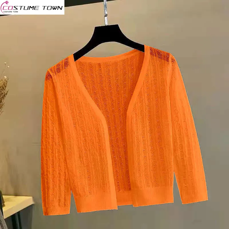 2024 Summer Shawl Ultra Thin Cardigan Short Knitted Shirt Hollow Ice Silk Women's Sunscreen Clothing