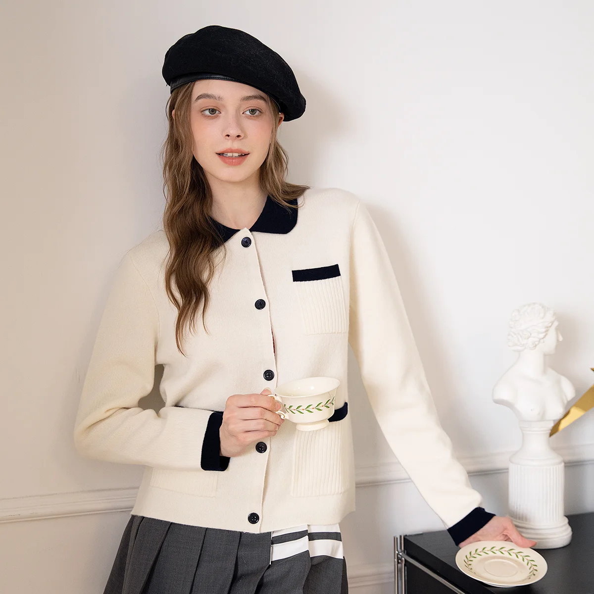 TC621 100% Wool 80 counts merino wool knitted cardigan woollen sweater elegant luxury women's clothing
