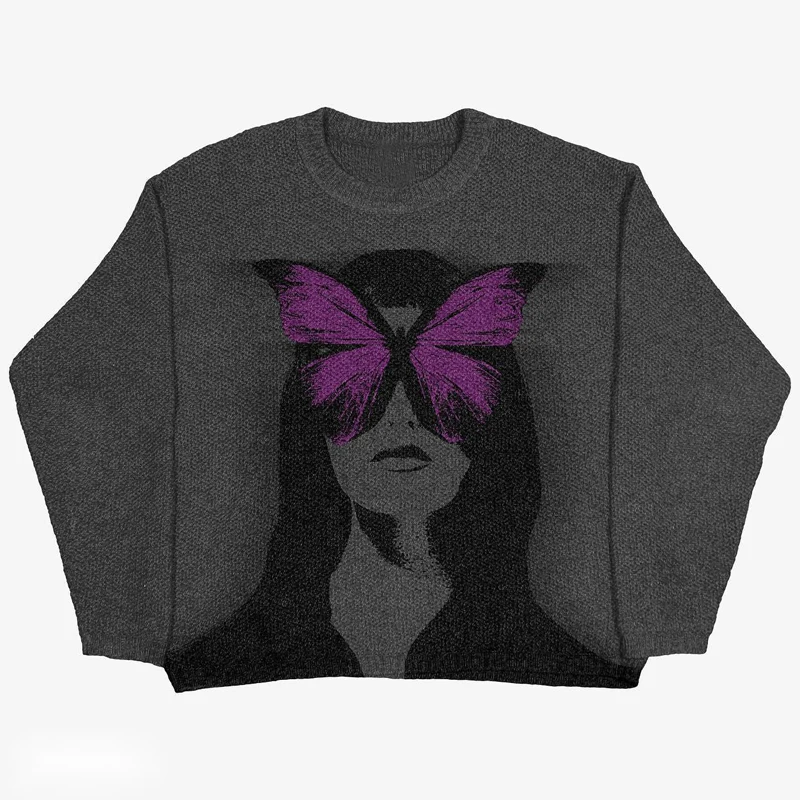 Butterfly Anime Girl Knitwear Sweater Pullovers 2024 Winter Harajuku Y2k Vintage Men's Jumpers Wool Women's Sweater Sweatshirts