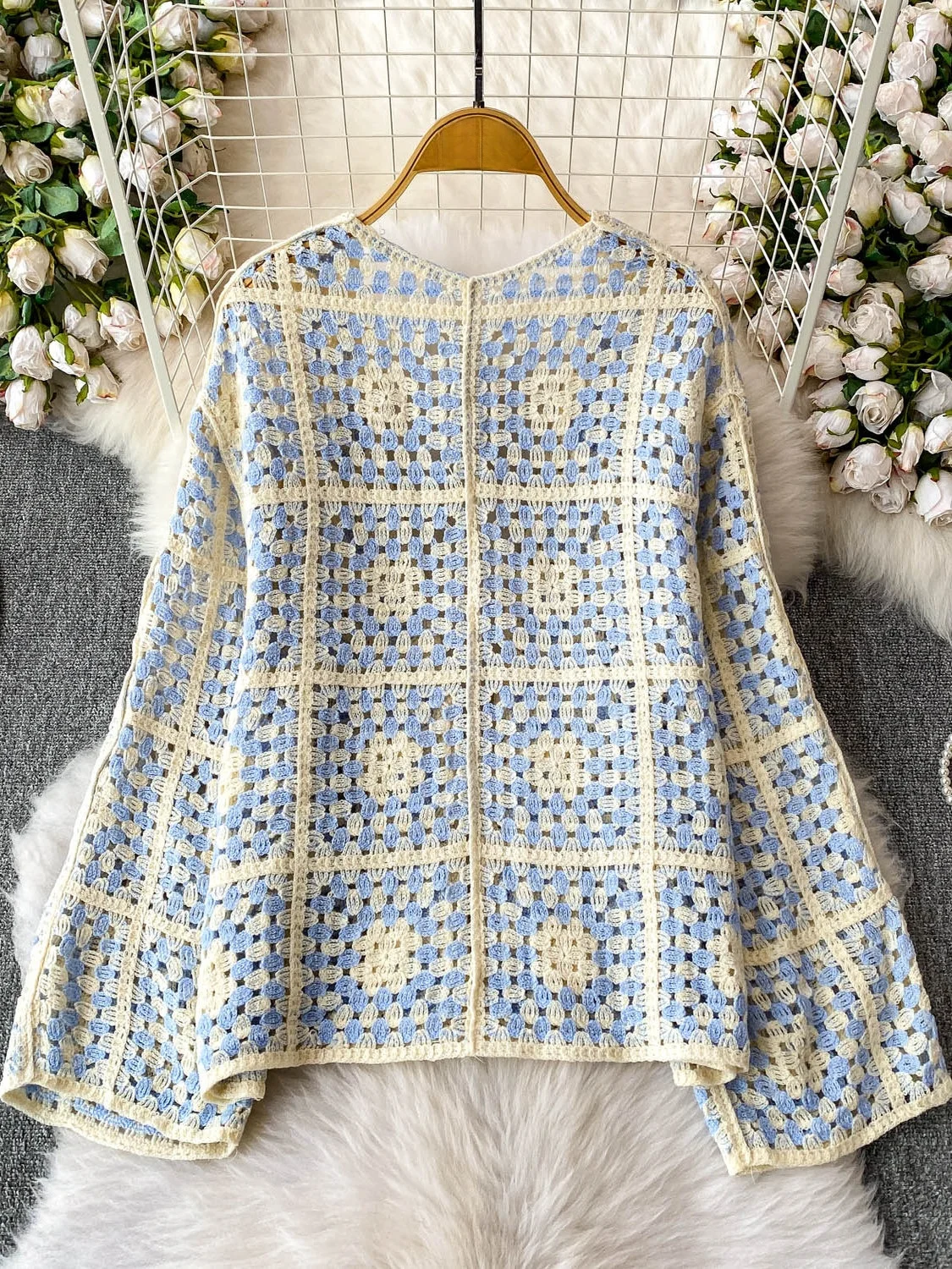 Blue Knitted V-Ne Open Cardigan Women's Loose Fit Autumn Winter Slimming Top Commute Sle Korean Version Medium Softn