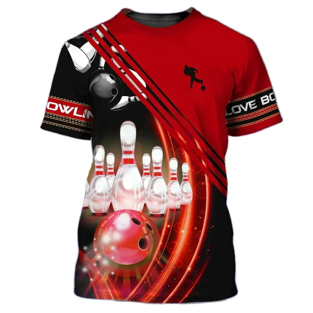Bowling Fashion Cartoon Print Summer Men's And Women's Luxury Sports Casual T-shirt Daily Oversized Crew Neck Short Sleeve Top