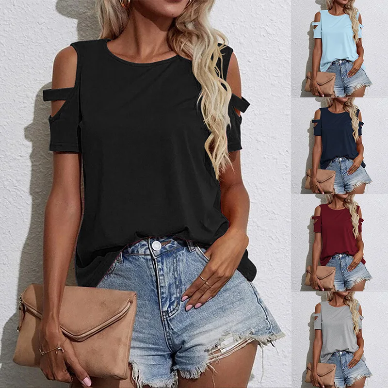 Summer new off-the-shoulder round neck short sleeve loose top T-shirt woman
