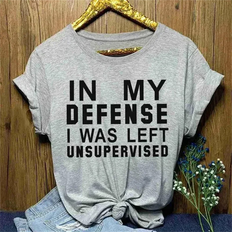 In My Defense I Was Left Unsupervised Tshirts Women Grunge Y2K Tops Funny Graphic Tees 2000s Clothes for Lady Girl Tops Hipster