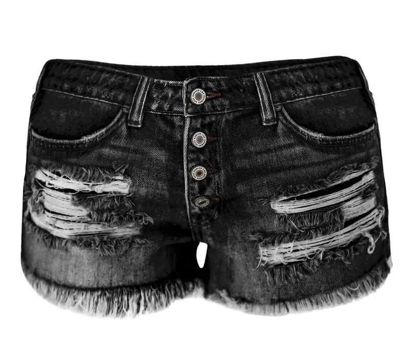 Retro Roll Up Hem Deep Blue Denim Shorts Women Summer Sexy Low Rise Hip Covering Hot Pants American Distressed Washed Jean Short