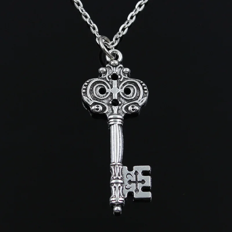New Fashion Vintage Skeleton Key Pendants Round Cross Chain Short Long Mens Womens Silver Color Necklace Jewelry Gift