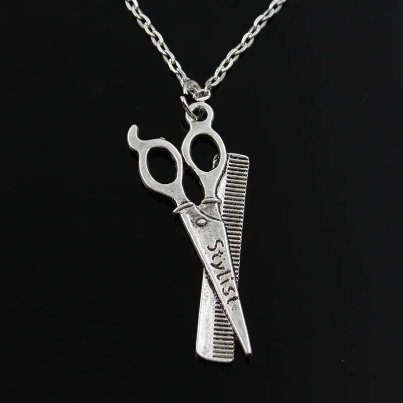 New Fashion Barber Scissor Comb Stylist Pendants Round Cross Chain Short Long Mens Womens Silver Color Necklace Jewelry Gift