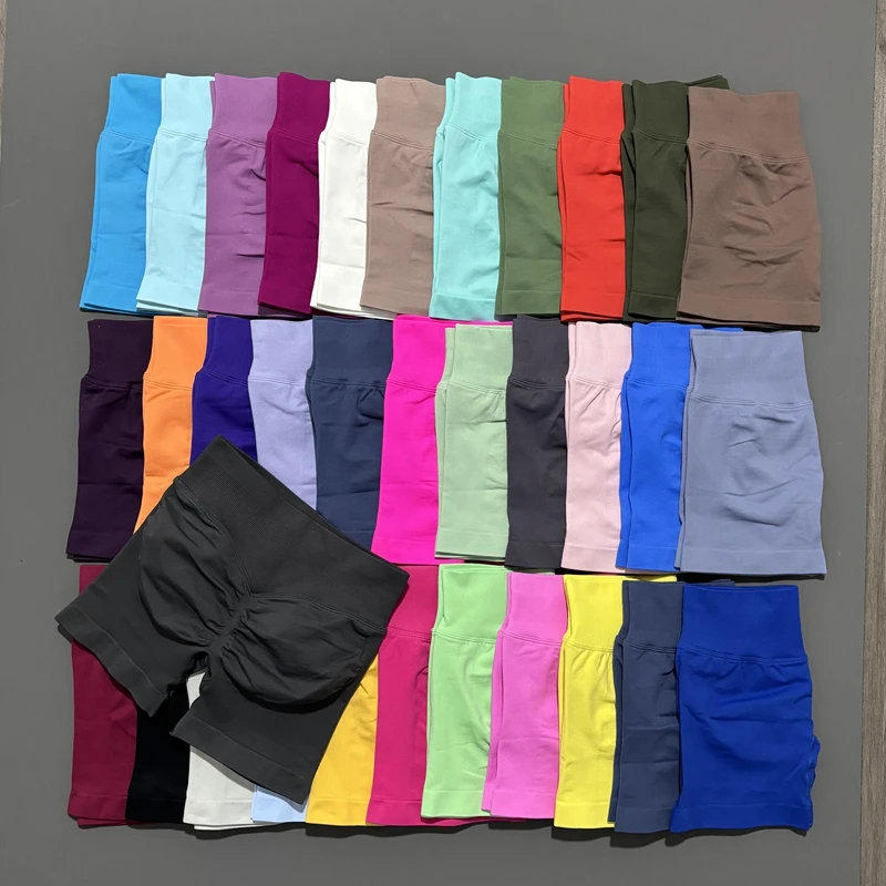 High Waisted Seamless Shorts Gym Shorts Women Fitness Sports Low Ribbed Band Workout Scrunch Butt Yoga Booty Running Short Pants