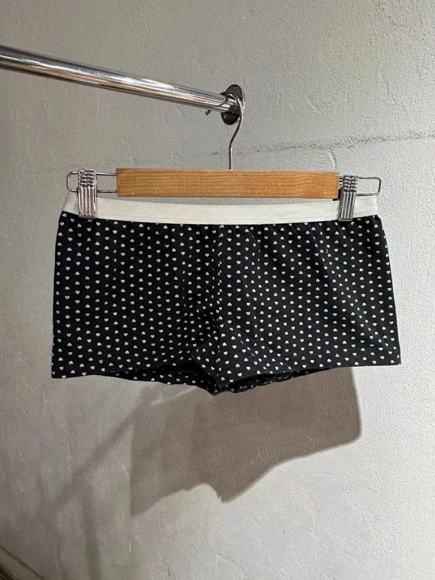 Hearts Black Sweet Boxer Shorts Woman Summer Patchwork Elastic Waist Straight Pajama Short Pants Cotton Vintage Home Underwear