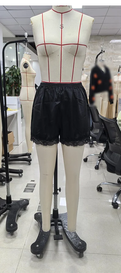 Lace Trimmed Shorts Black Large 100% Polyester Casual Wear Breathable Summer Shorts For Women