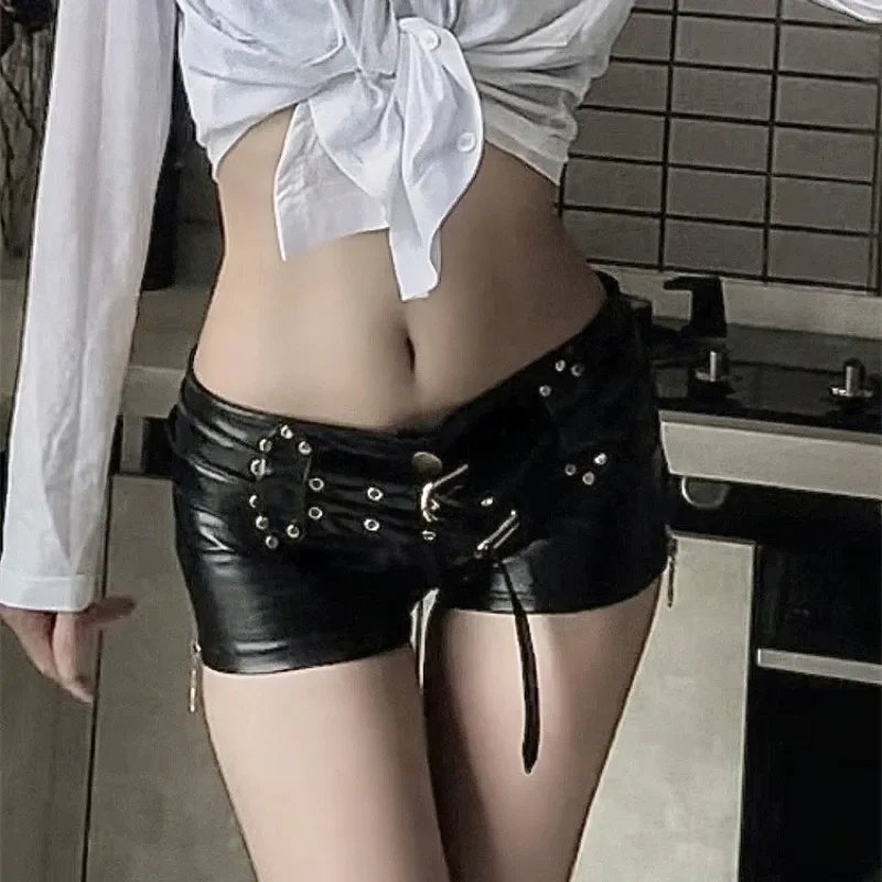2025 New Spicy Girl Y2K Nightclub Sexy Low Waisted Bodycon PU Leather Super Shorts Boots Shorts