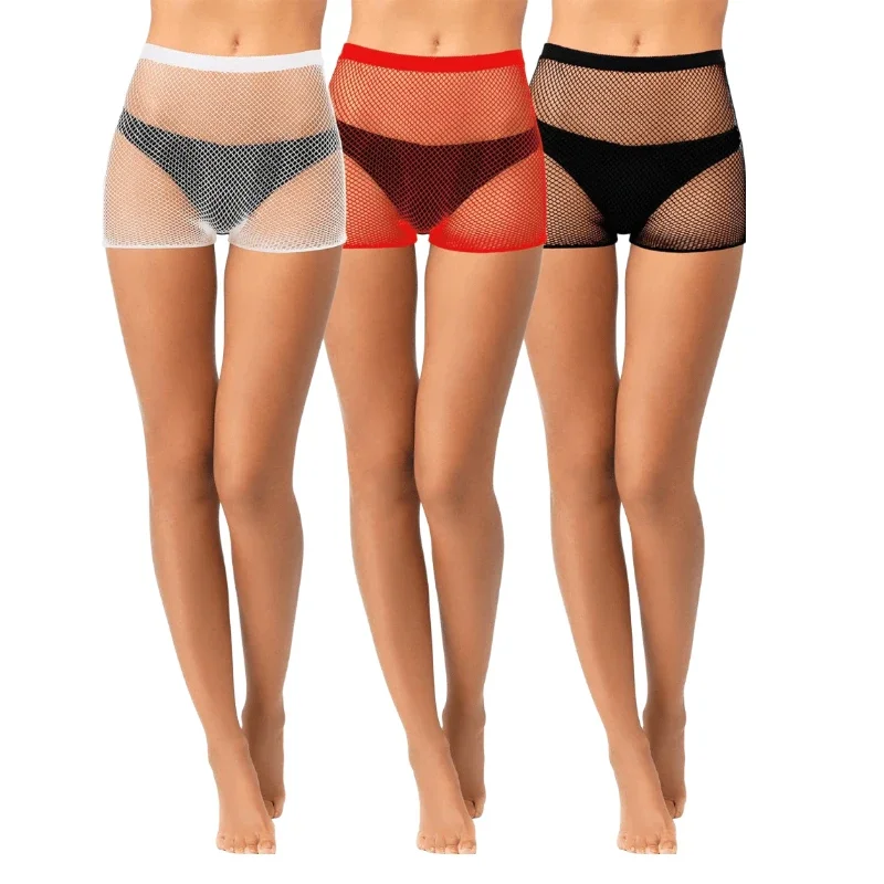 shengrenmei 3Pcs Fishnet Shorts Women's Biker Shorts Pantyhose See Through Mesh Tights High Waisted Elastic Breathable Underwear
