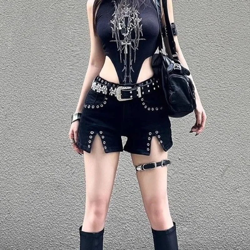 2025 Summer Women Japanese Jean Shorts Y2K 2000s Denim Gothic Hot Pants Harajuku Goblin Core Coquette Gyaru Grunge Kpop Punk