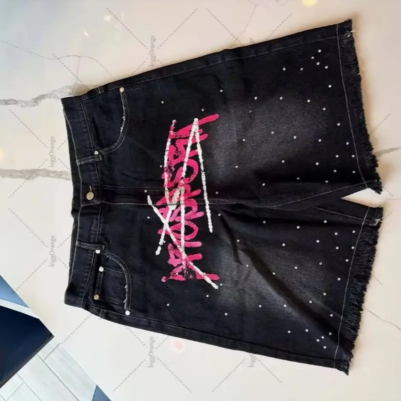 Embroidered Shorts Y2K Streetwear Man Woman Clothing Harajuku Hip Hop Baggy Denim Gym Shorts Gothic Summer Basketball Shorts