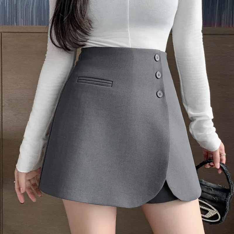 Gray Office OL Womens Skirts Shorts With Button 2023 Fall High Waist Suits Fabric Short Trousers Femme